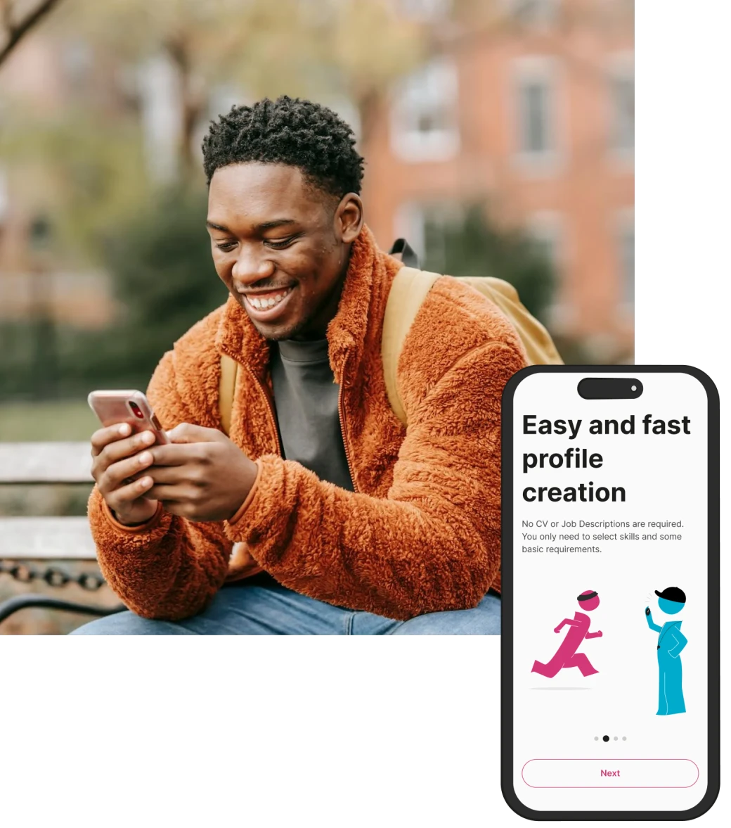 Start reviewing profiles with matching skills, then match and chat directly with candidates.